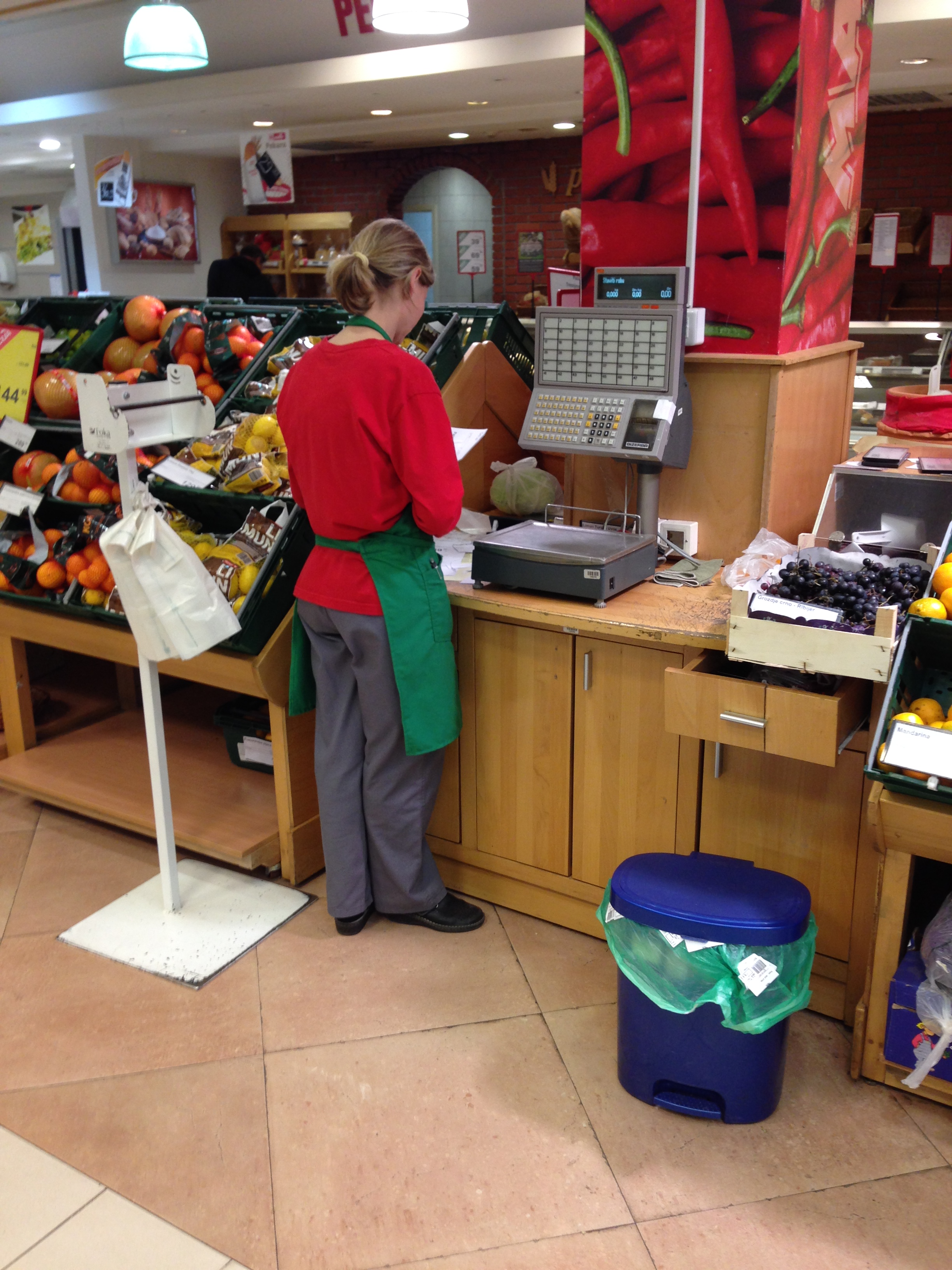 Mit scharfem Beobachten anlässlich meines nächsten Einkaufs merkte ich, dass die gestrige Hilfe nicht etwa ein glücklicher Zufall war: Alle Kunden liessen die Nummer von der netten Dame eintippen. Diese Profi-Früchte-Wägerin (siehe Foto) ist somit Teil der Einkaufsdienstleistung und die richtigen Nummern der Kundschaft gar nicht bekannt.